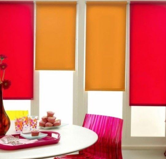 Комбинируйте однотонные шторы с яркими подушками или ковром. Если окно большое, можно установить несколько полотен разного цвета — так окно станет дизайнерским элементом, а не просто функциональной зоной.