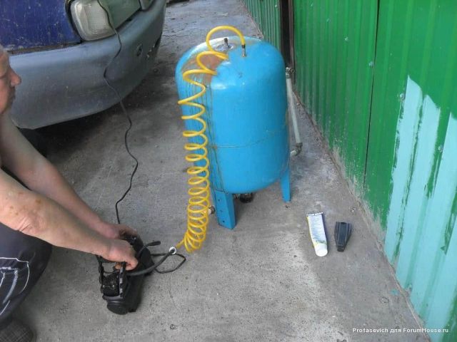 Возможна также неисправность, когда гидраккумулятор подкачивается при открытых кранах. Это может происходить в том случае, если в нём есть утечка воздуха. Проверка данного повреждения выполняется в пустом гидроаккумуляторе, в котором нет воды. Для этого нужно спустить всю воду из системы или отключить устройство и прокачать автокомпрессором.