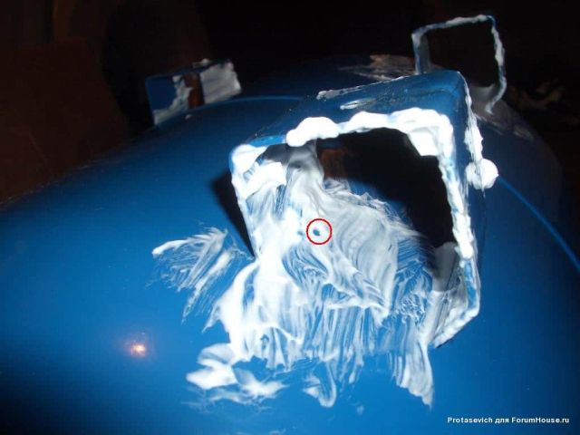 Чтобы увидеть утечку воздуха, нужно обработать подозрительные места обычной мыльной пеной или нанести на поверхность пену для бритья. В местах, где появятся пузырьки, очевидна разгерметизация.