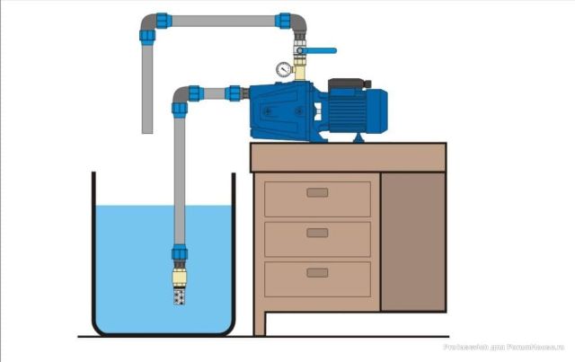 Водоснабжение с использованием автоматической насосной станции организовано таким образом, что в ней всегда есть небольшой запас воды, который находится либо в накопительном баке, либо в гидроаккумуляторе. Станции с накопительными баками уже практически не используются, так как в них регулирующим инструментом был поплавок, работа которого нестабильна и менее эффективна, чем система из гидроаккумулятора и реле давления.