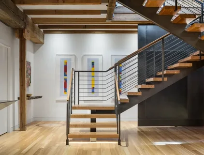 Лестницы могут располагаться на разных высотах, в зависимости от размеров и назначения помещения и требований к безопасности, подходят для двухэтажной конструкции.
