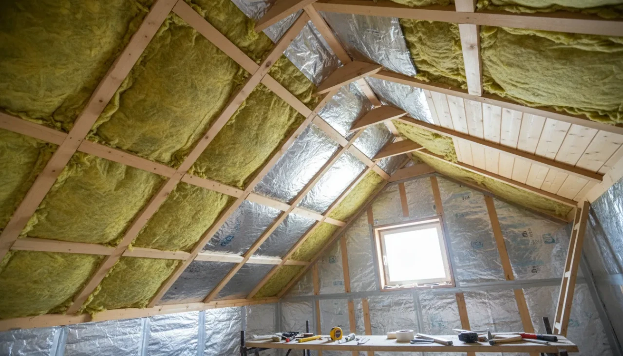 Утепление потолка и кровли ускоряет прогрев бани на 15-20 минут и замедляет остывание. Между стропилами укладывайте минеральную вату толщиной 150-200 мм. Снизу монтируйте фольгированную пароизоляцию — она отражает тепло обратно в помещение. Сверху утеплитель закрывают гидроизоляционной мембраной, которая выпускает пар наружу, но не пропускает влагу внутрь.