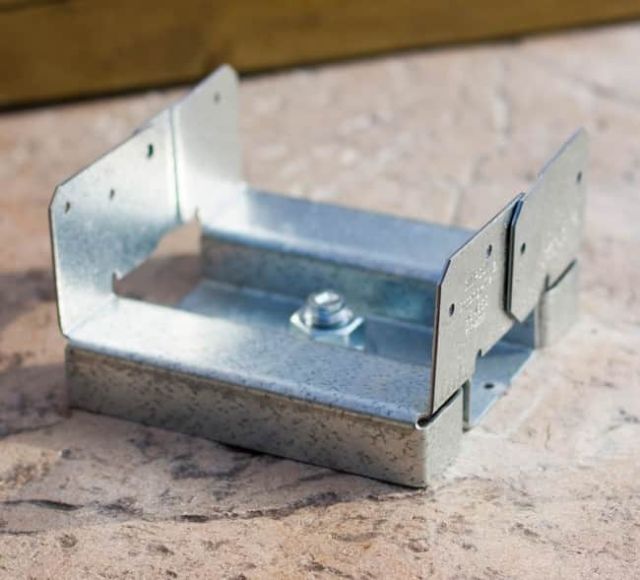 Первым делом изготавливается фундамент. Его можно сделать точечно в виде столбиков или обустроить сплошную бетонную стяжку. На следующем фото показан установленное крепление для будущих вертикальных опор.