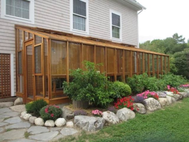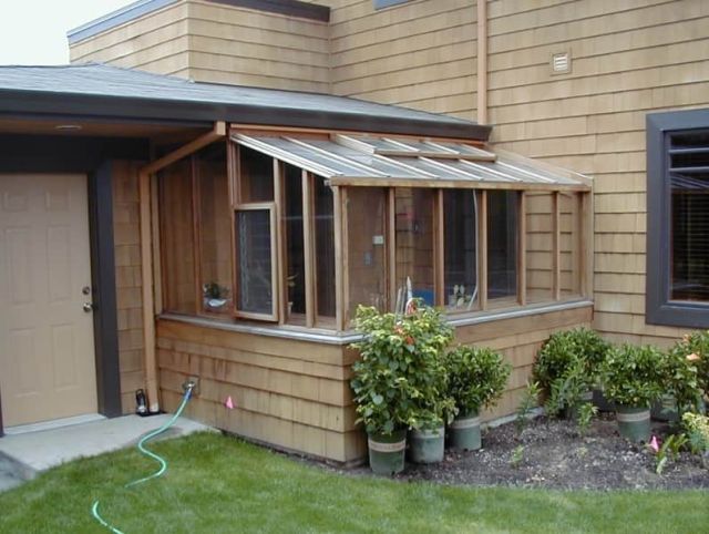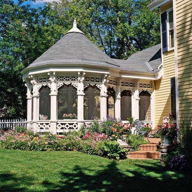 Удобная беседка, примыкающая непосредственно к одной из стен дома может стать местом постоянного времяпрепровождения в тёплые летние дни. Чуть более сложная конструкция пристройки с застекленными или укрытыми другим защитным материалом стенами, позволит отдыхать вне дома также весной или осенью, когда солнце греет уже не так активно, и нужна защита от прохладного ветра или дождя.