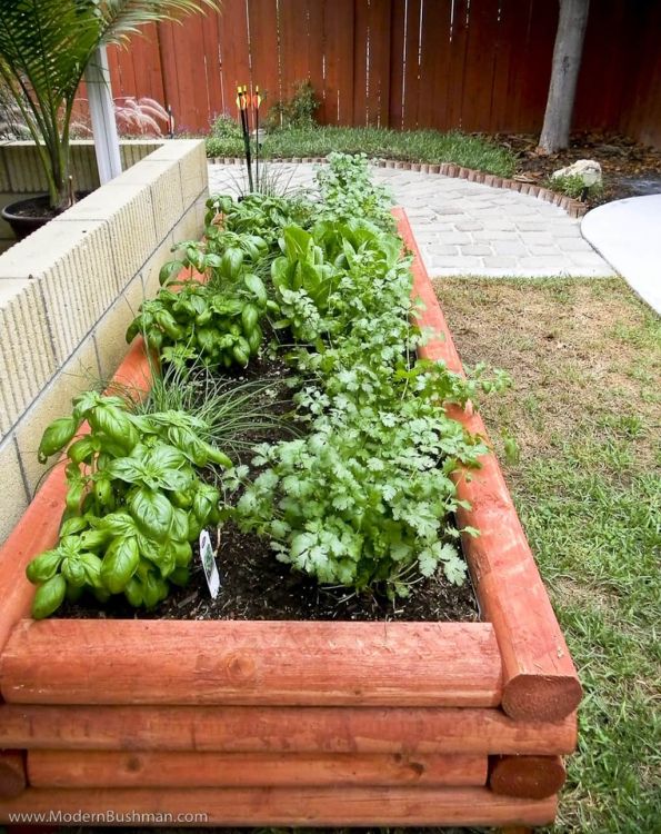 Солидно смотрится клумба с бортами из сложенного бруса. Такая оградка обойдётся недешево, но в для некоторых дворов станет прекрасным дополнением в ландшафтном дизайне.