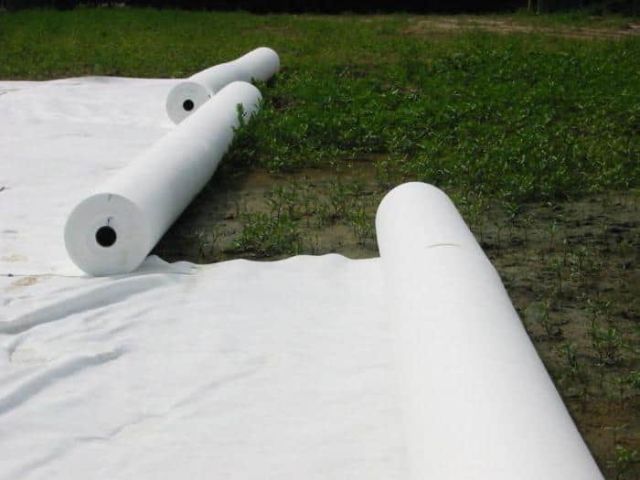На подготовленный грунт выстилается искусственный нетканный материал, если в клумбе будут многолетние растения, а под травянистые достаточно газетного настила. Поверх защитного слоя выполняется отсыпка грунта и в прорези в настиле высаживаются необходимые растения. Промежутки между ними заполняются специальным защитным слоем мульчи. Это может быть накрошенная кора, опилки, стружки или гравий, а также галька.