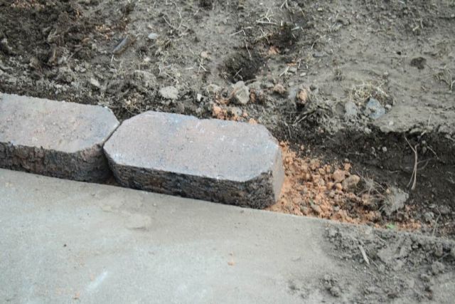 Как вариант — простая клумба из вертикально установленных плоских камней. Минимум шума и пыли.