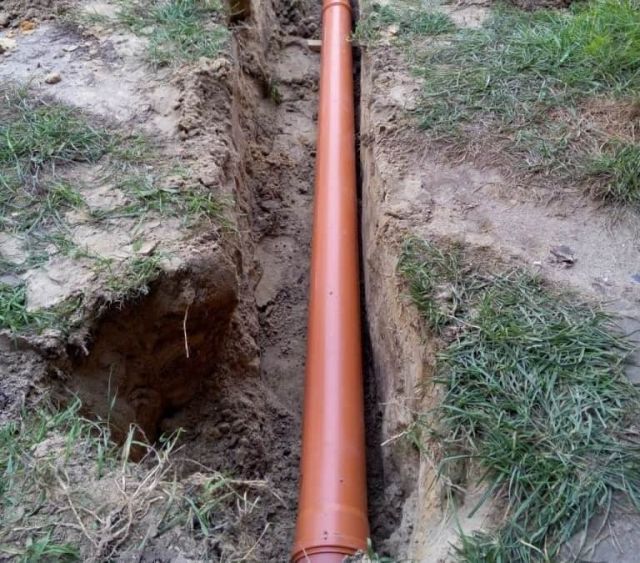 Стандартный диаметр трубы для канализации за пределами здания составляет 110 мм. Материал, используемый при изготовлении таких труб называется непластифицированный поливинилхлорид (нПВХ) и обладает достаточно высокими показателями прочности и низкой шероховатостью поверхности. Стоки внутри канала с такими показателями будут двигаться очень хорошо, если создать им даже небольшой наклон.
